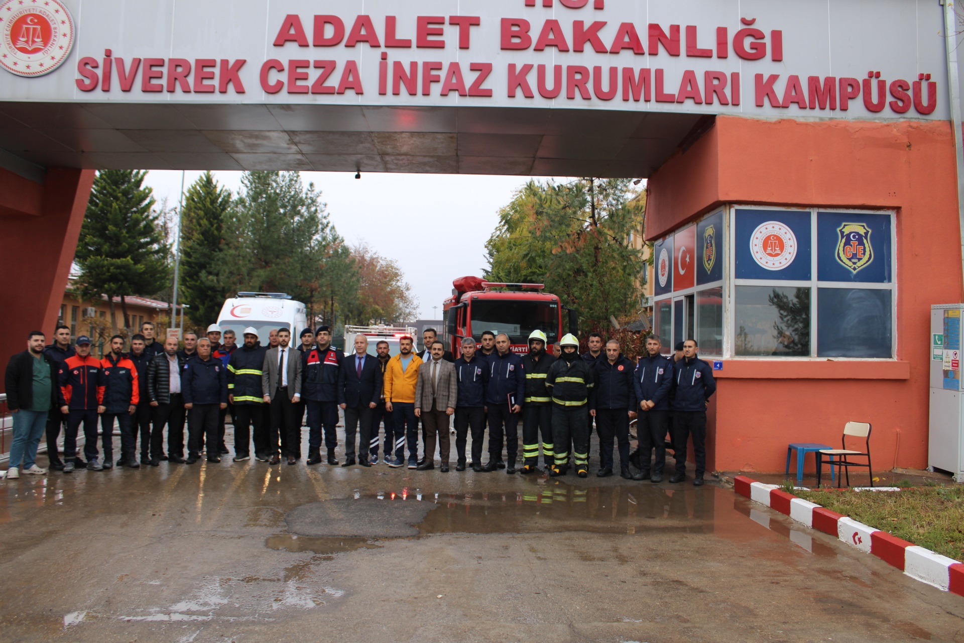 Ülkemizin deprem kuşağında bulunması sebebi ile yaşanabilecek olası bir depreme hazırlıklı ve tedbirli olmak adına 11.12.2025 tarihinde Siverek Açık Ceza İnfaz Kurumumuzda Kurum Müdürümüz Niyazi Faruk AKKILIÇ başkanlığında deprem ve yangın tatbikatı gerçekleştirilmiş olup, tatbikata 112 Acil İtfaye, İlçe Jandarma Komutanlığı, Cezaevi Jandarma Tabur Komutanlığı, Aksa Doğalgaz, Afad ekipleri bilgilendirilmiş ve ilgili birimler kısa sürede kurumumuza intikal ederek gerekli müdahalede bulunmuşlardır. Düzenlenen tatbikat planlandığı gibi sorunsuz bir şekilde tamamlanmıştır.